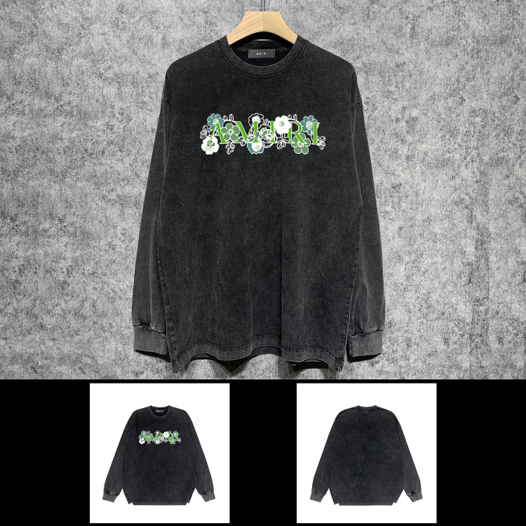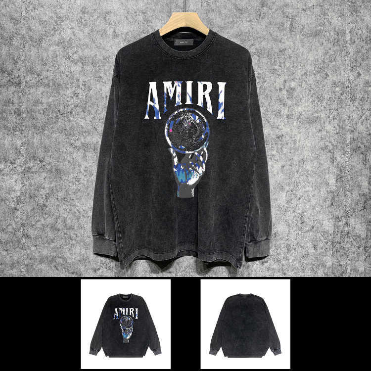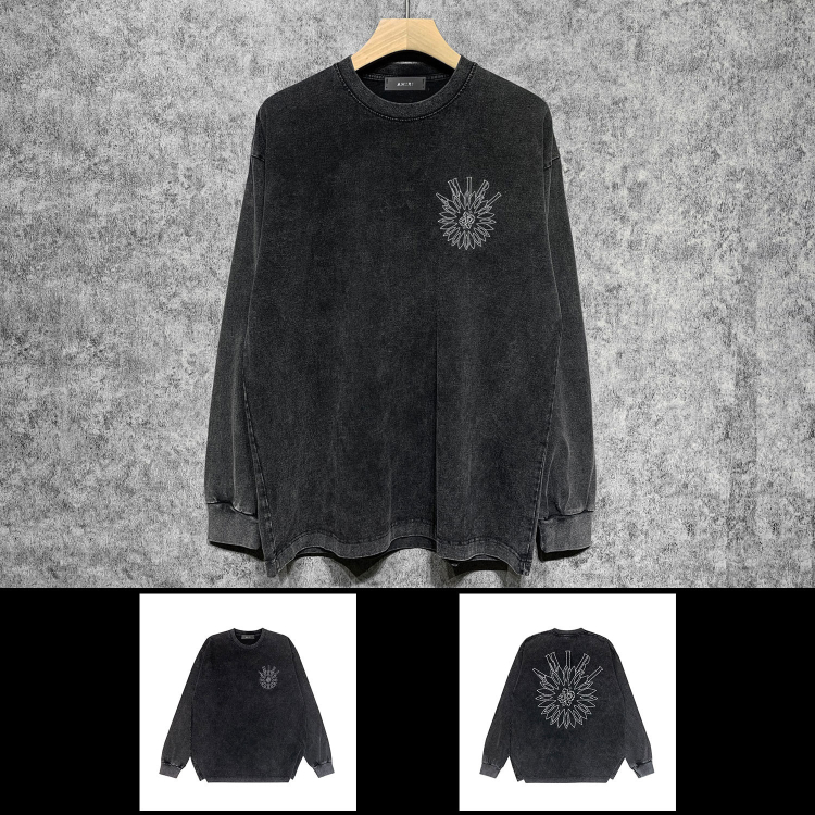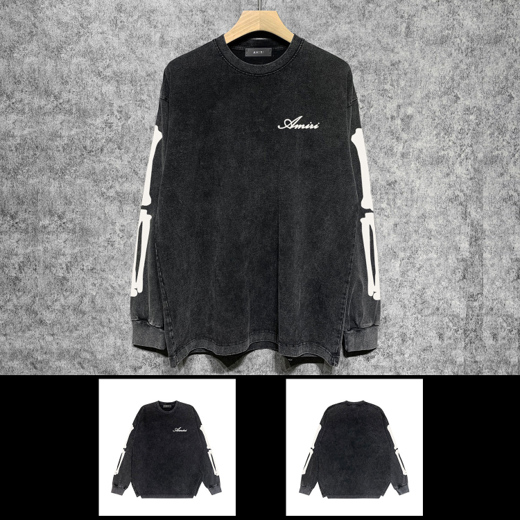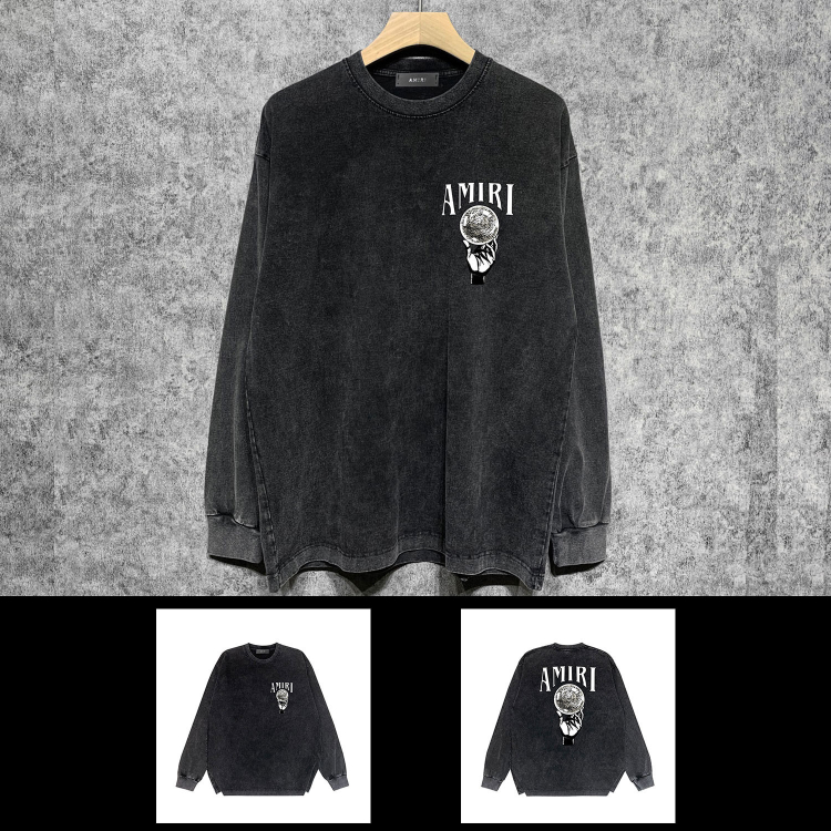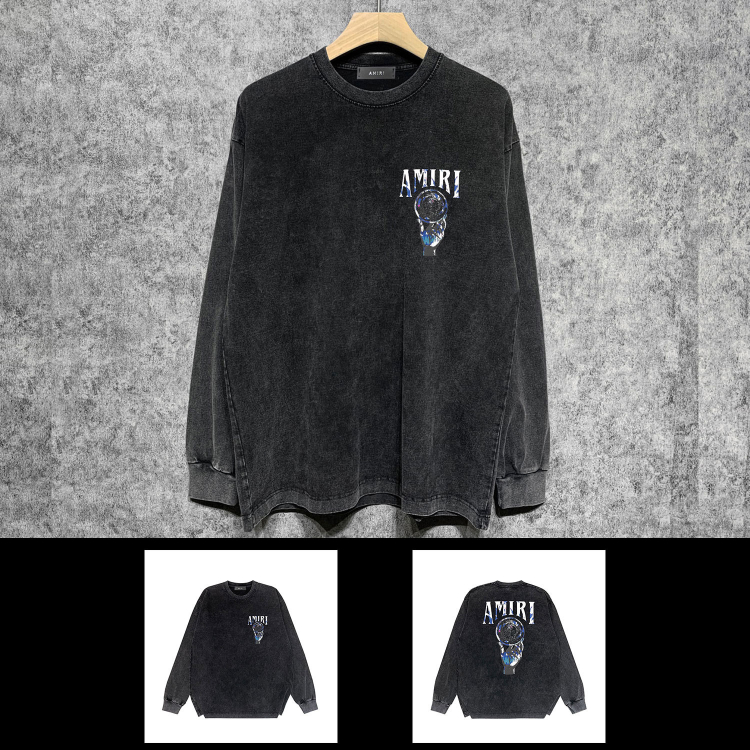 AMIRI Washed Distressed Print Casual Long-Sleeve T-Shirt-5520