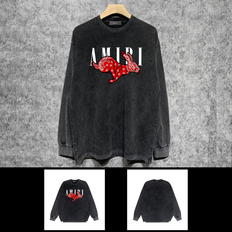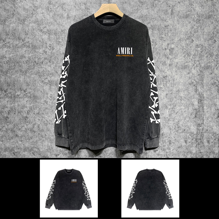 Home > AMIRI Washed Distressed Print Casual Long-Sleeve T-Shirt-5520