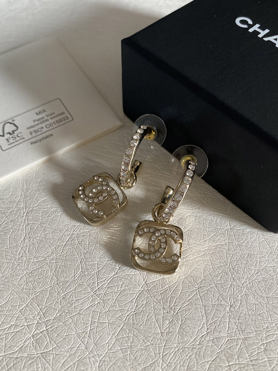 Chanel hollow rhinestone square earrings-3951