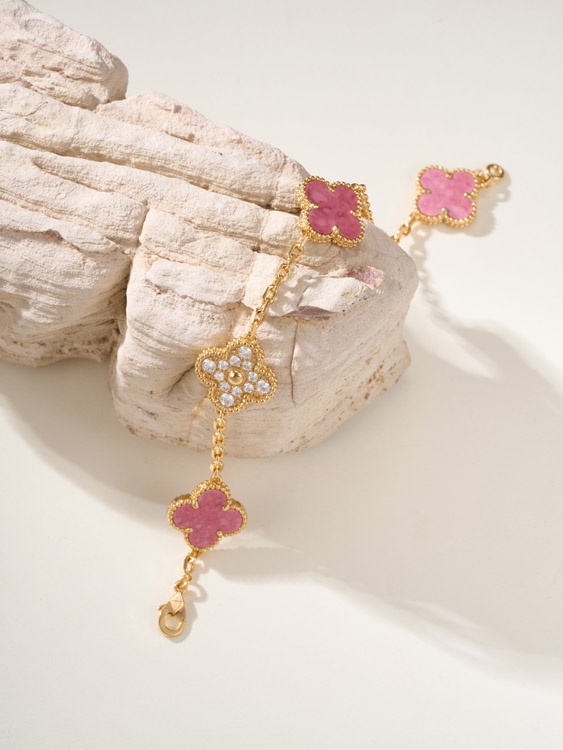 Van Cleef & Arpels pink diamond rose stone five flower bracelet-3903
