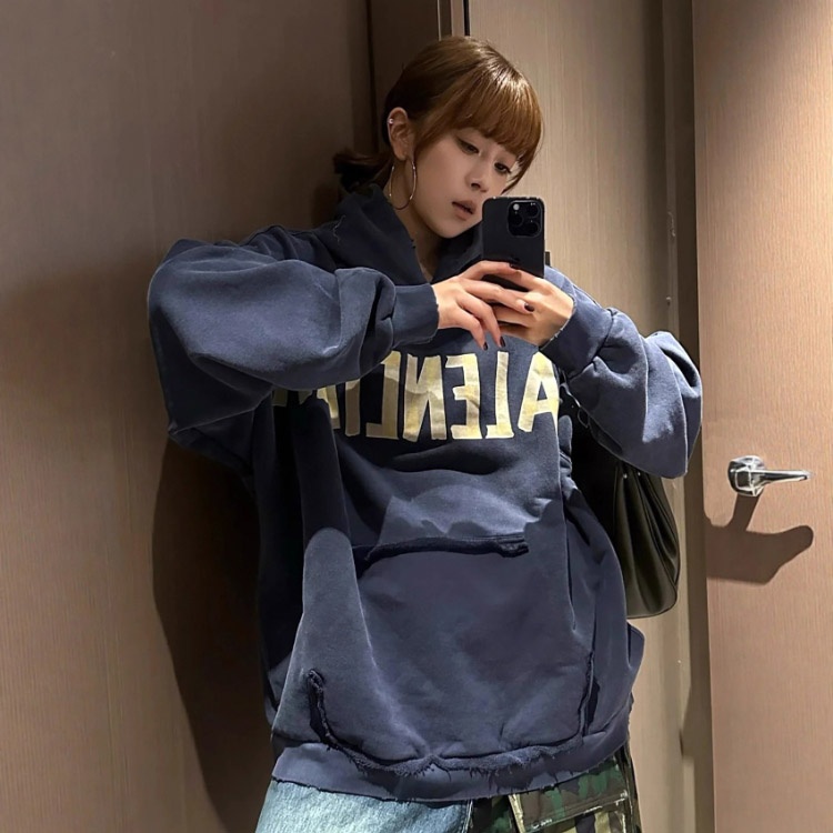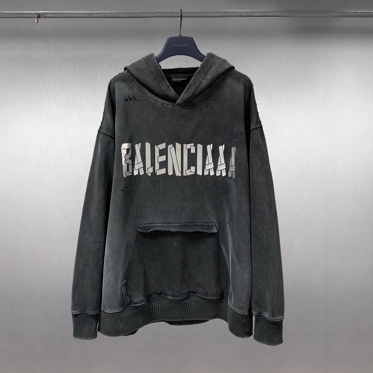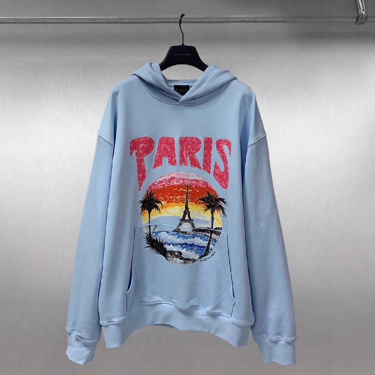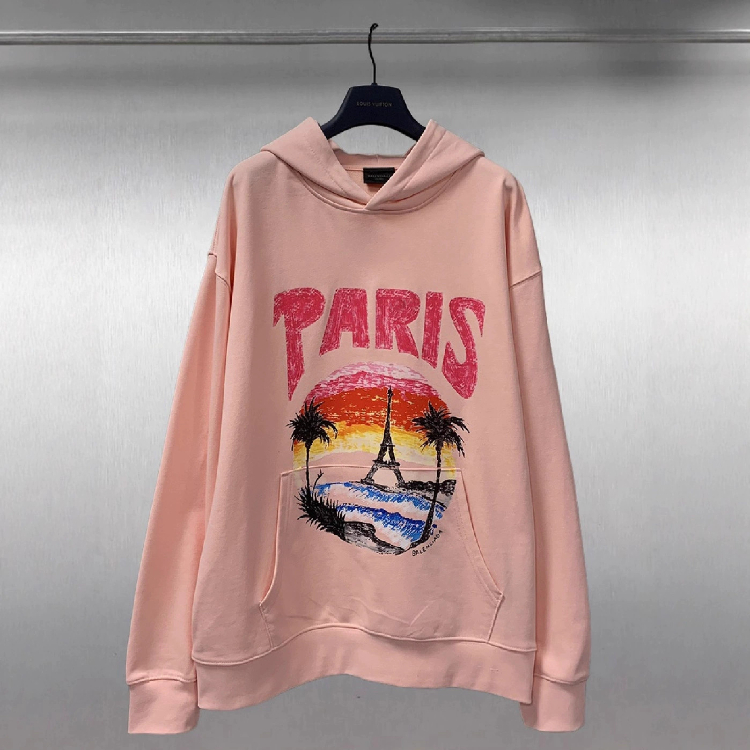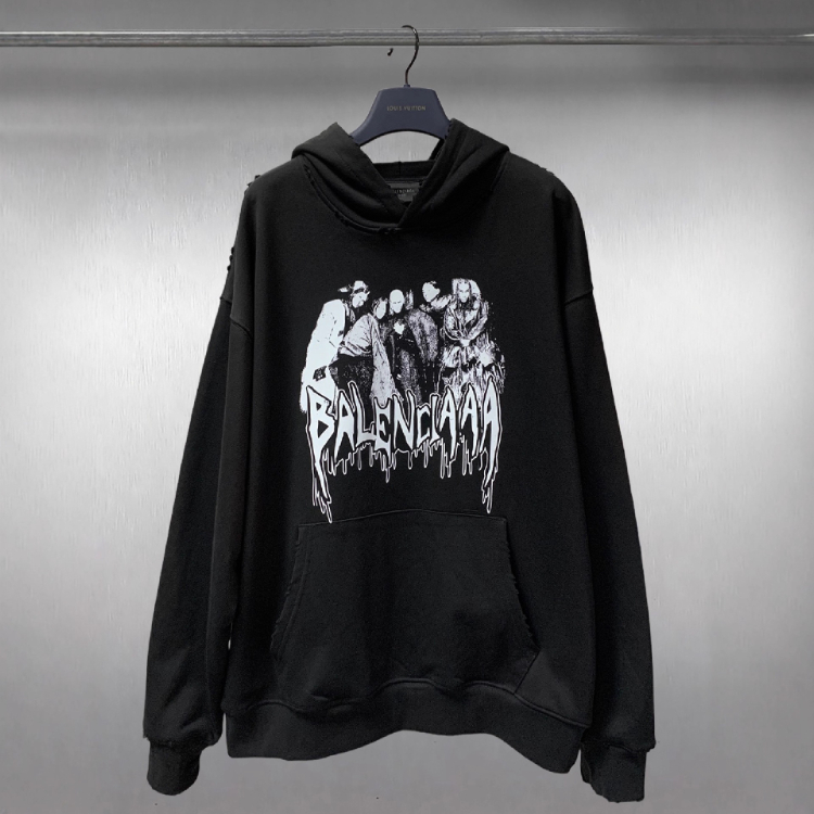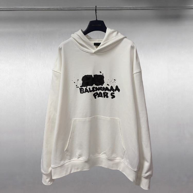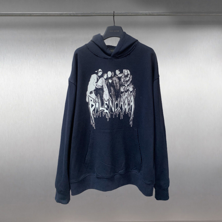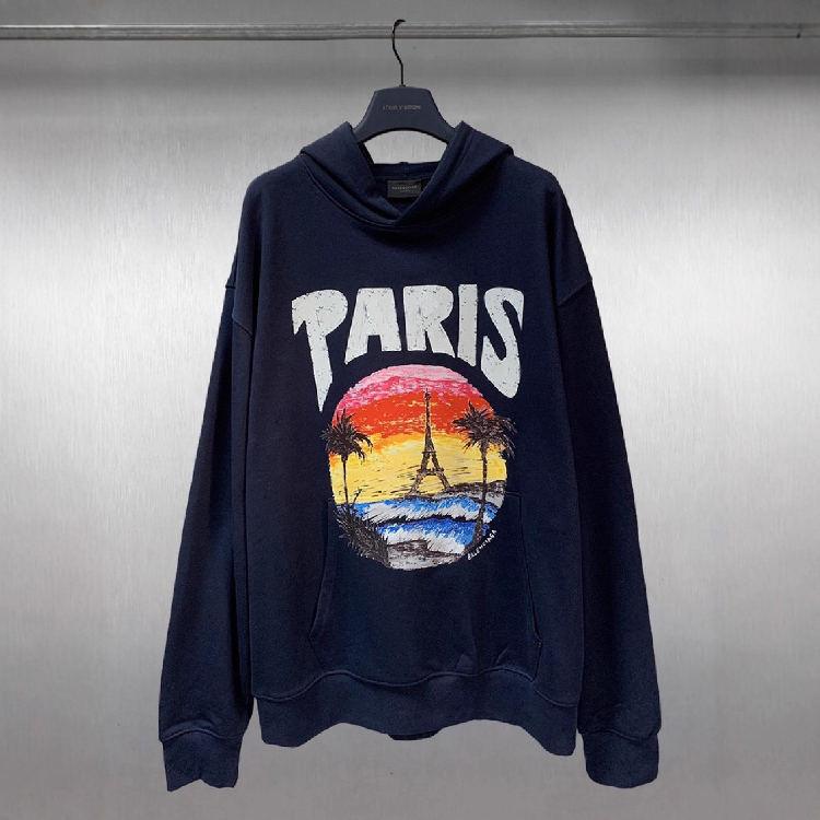 Balenciaga high-end printed loose-fitting pure cotton hooded sweatshirt-5336