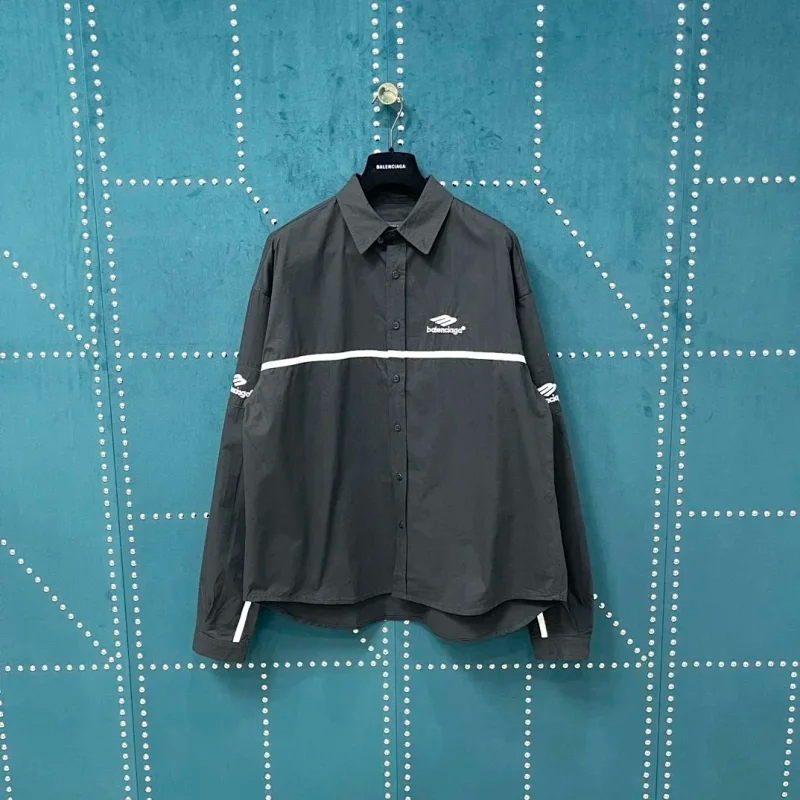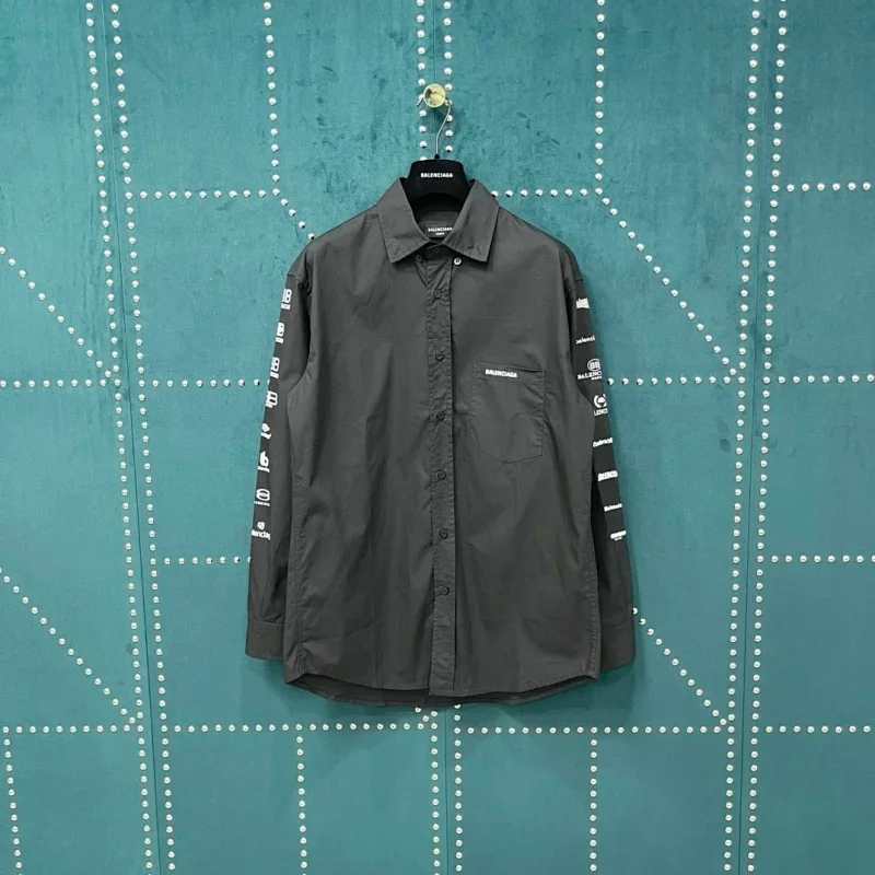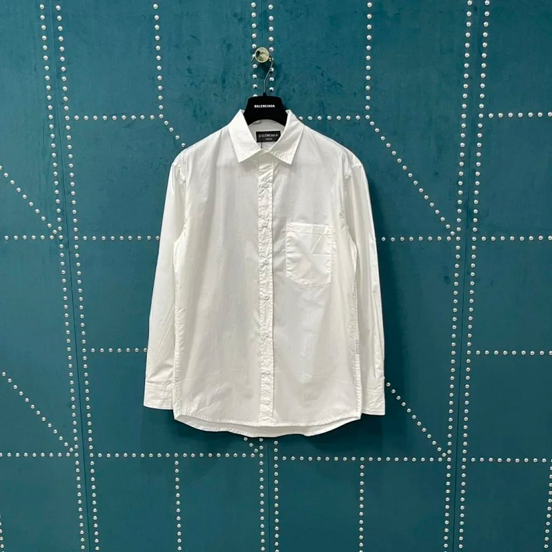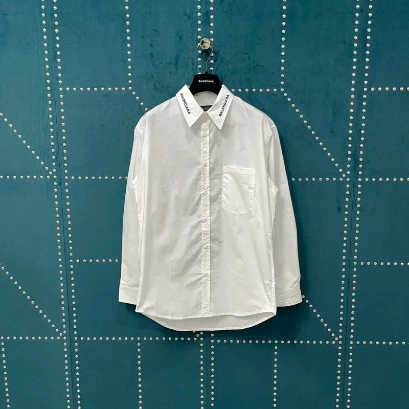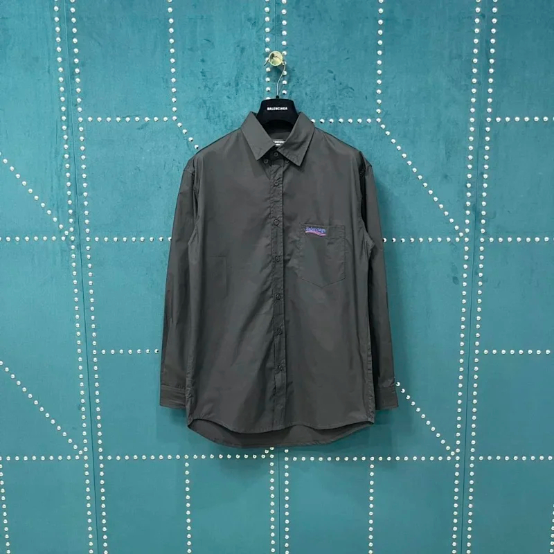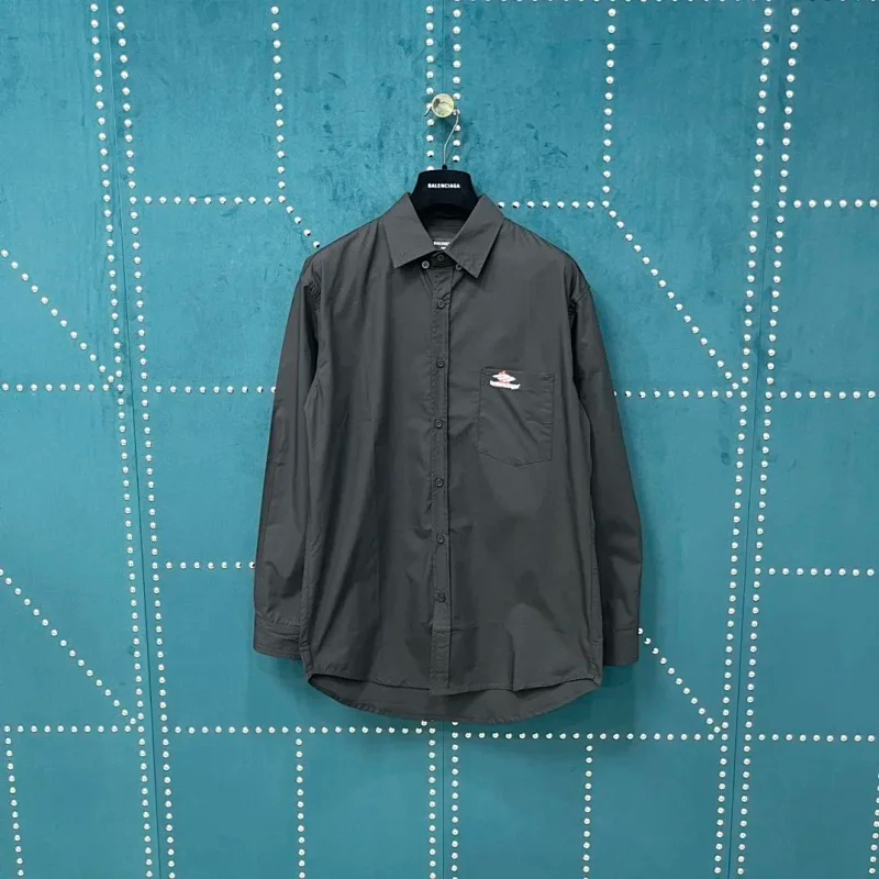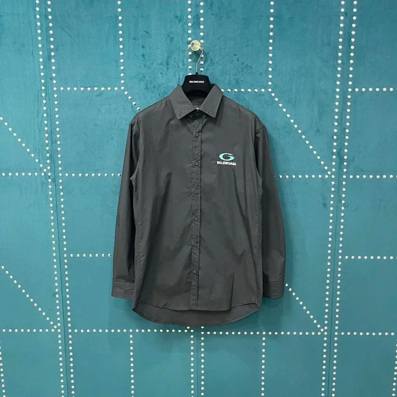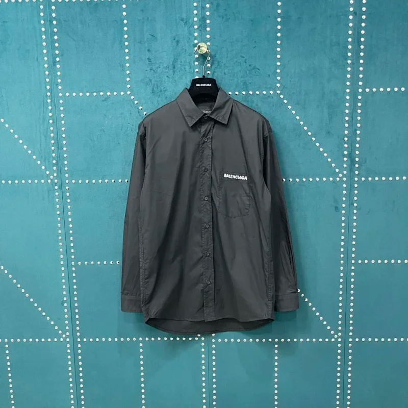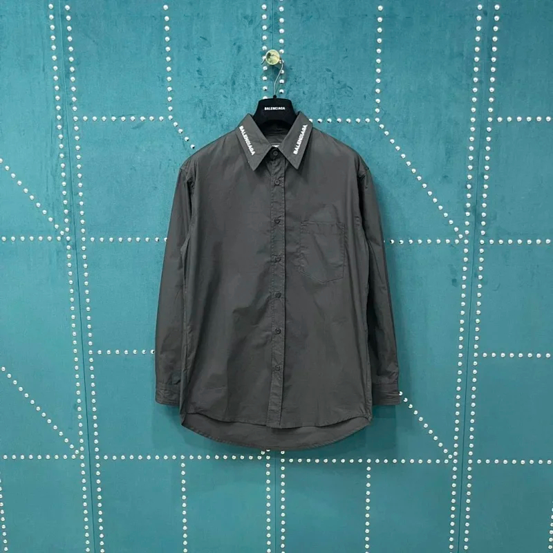 Balenciaga solid-color collared button-down long-sleeved shirt-5163