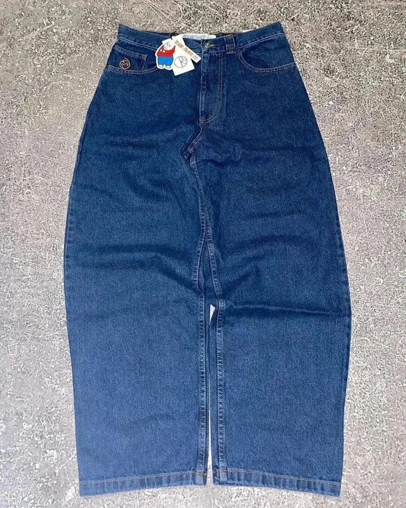 Big boy fashion hip-hop cartoon embroidery retro multiple loose jeans-2478