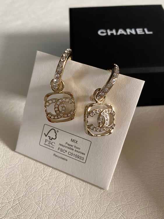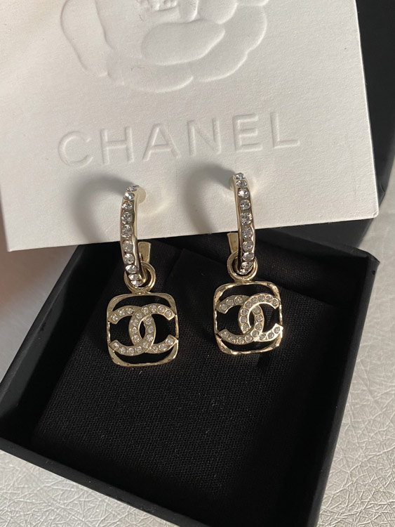 Chanel hollow rhinestone square earrings-3951