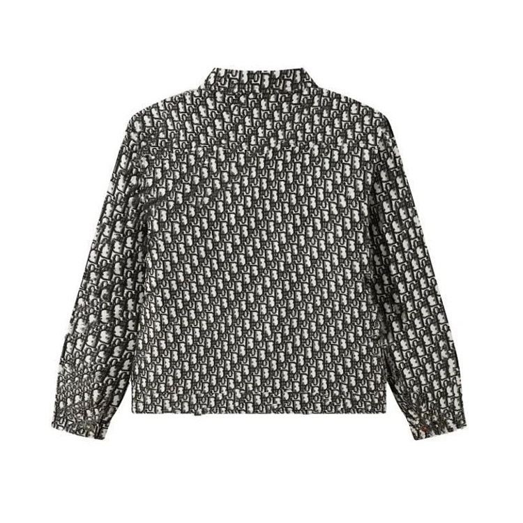 DIOR Oblique Print Solid Color Zipper Stand Collar Short Long Sleeve Down Jacket-4258