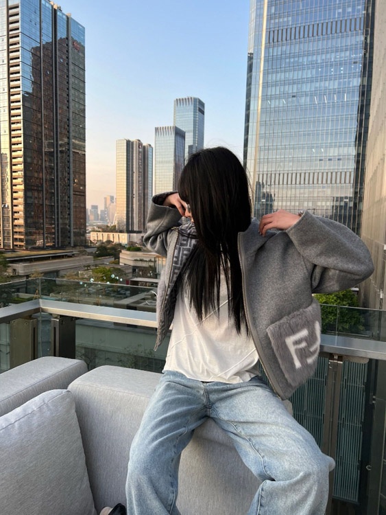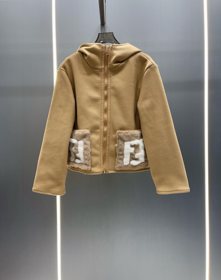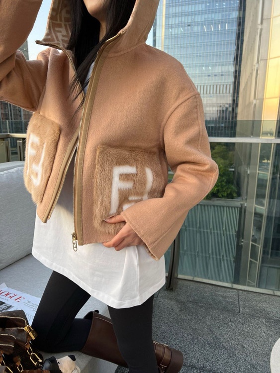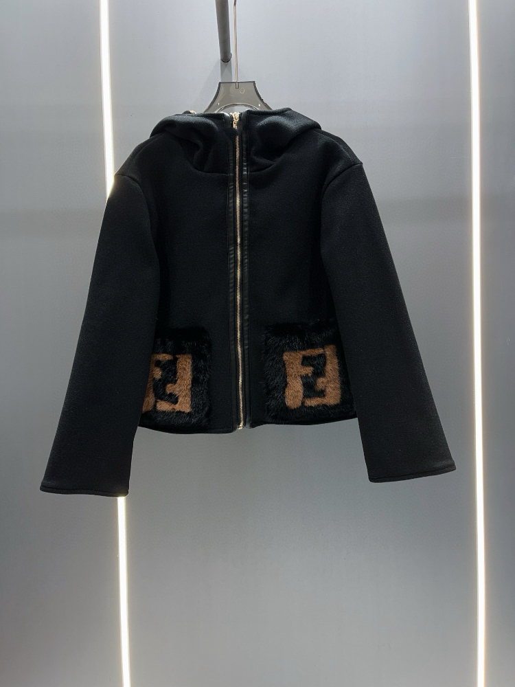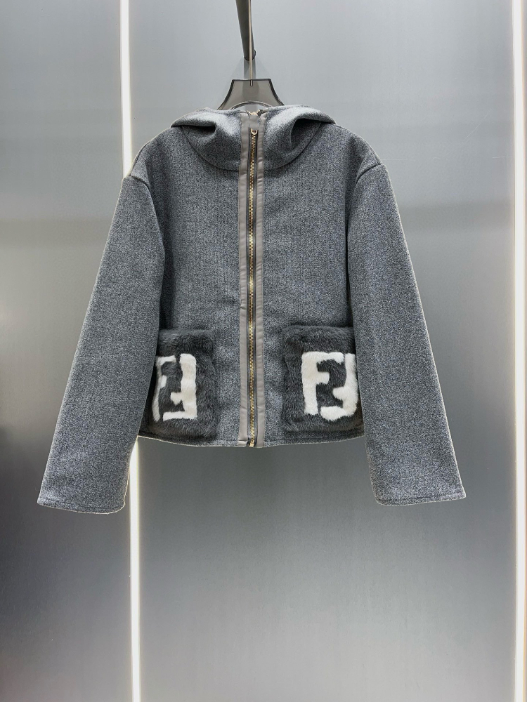 Fendi new wool blend zip-up hooded short jacket-5378