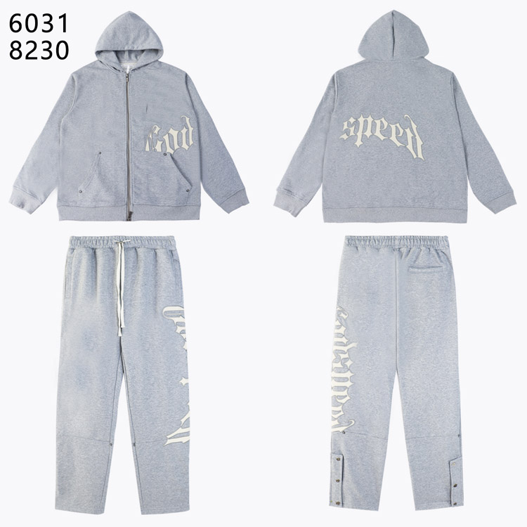GODSPEED American Streetwear Simple Letter Cardigan Hooded Set-4556