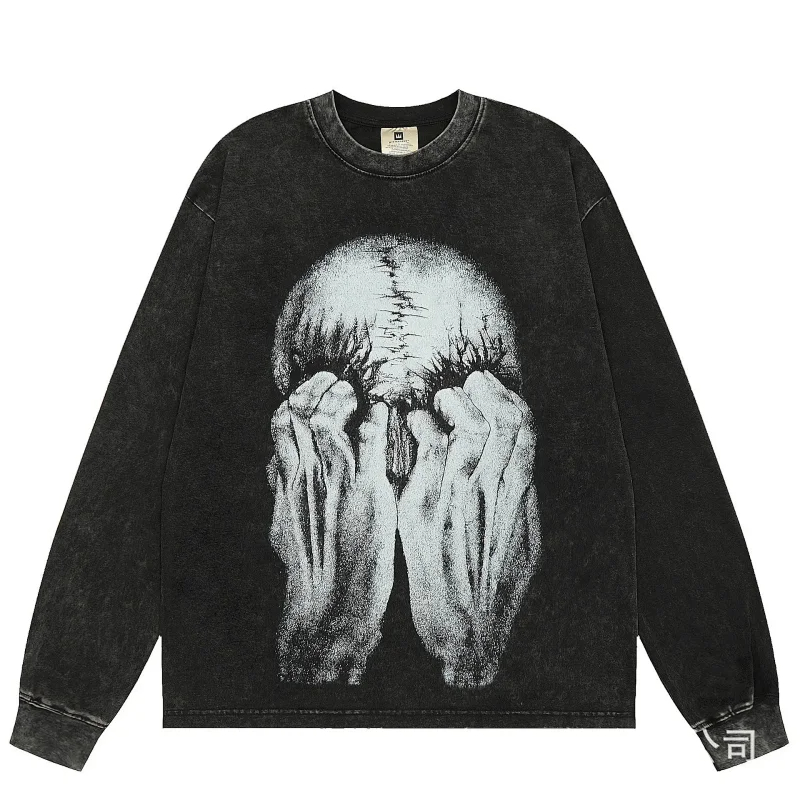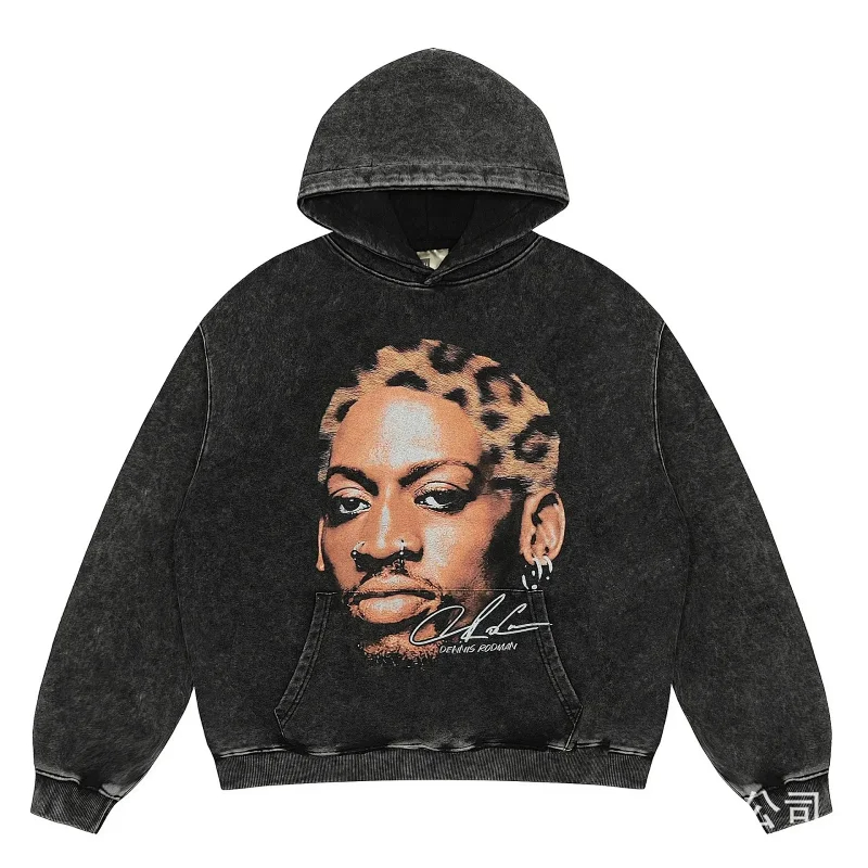 KANYE I told you the same retro washed and distressed hooded sweatshirt with prints Kanye West(39 styles)-2142