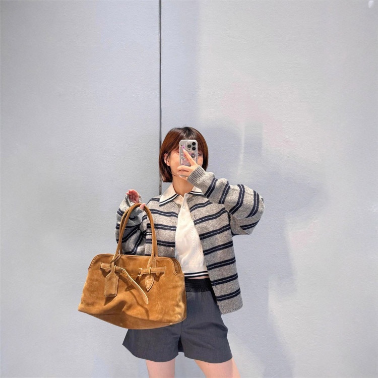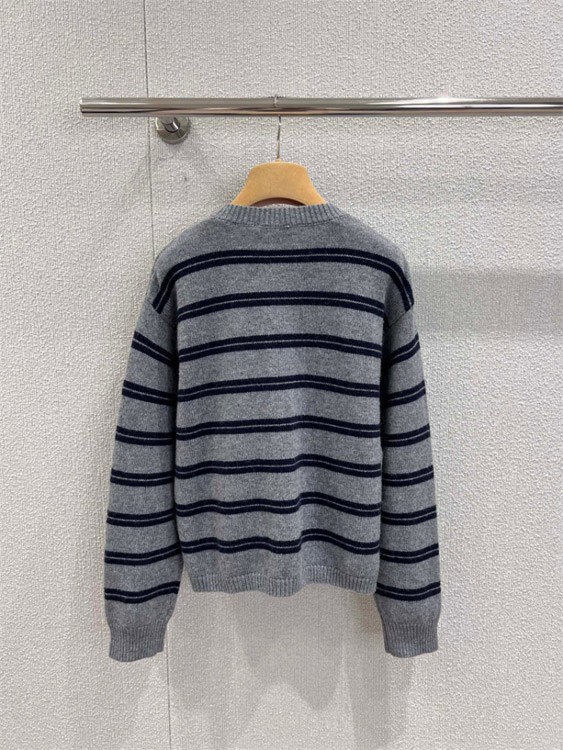 Miu Miu new loose-fitting striped long-sleeved crew neck knitted cardigan-5301