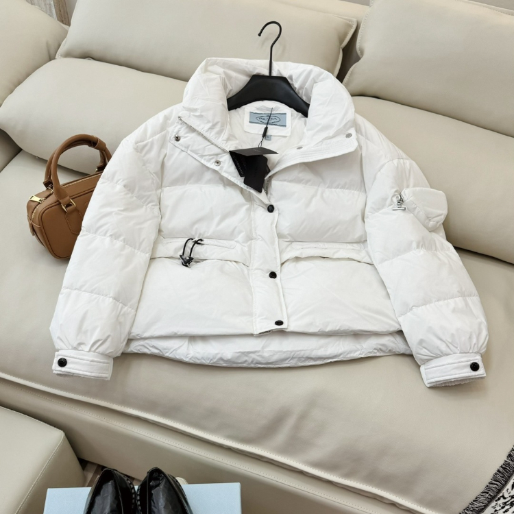 Prada new triangular bag design white duck down and goose down short puffer jacket-5340