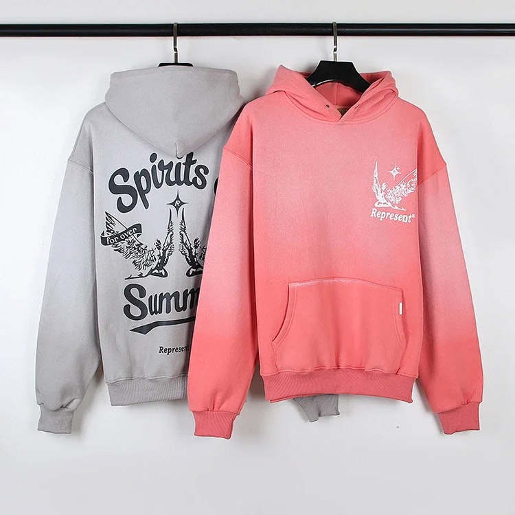 REPRESENT Printed Drawstring Hooded Jersey Sweatshirt-4497