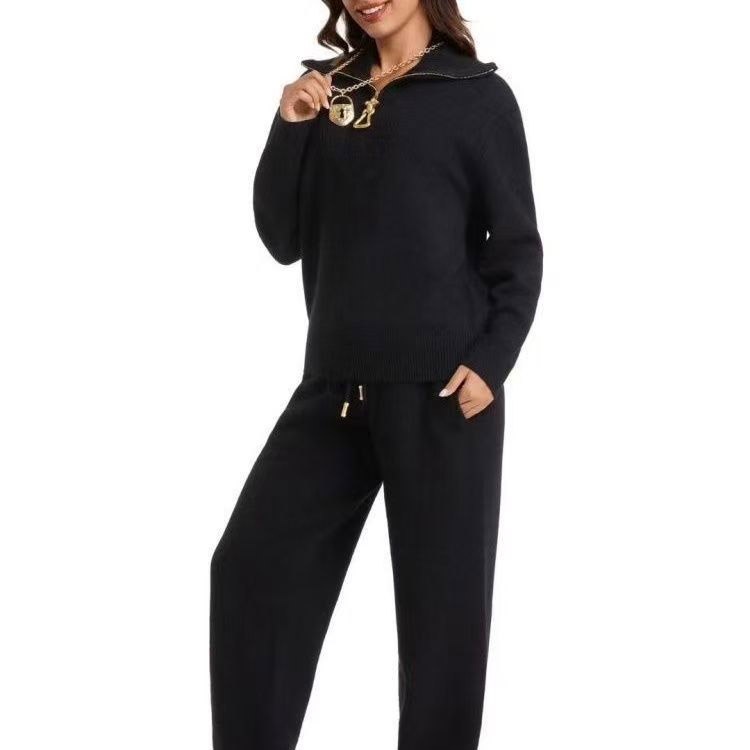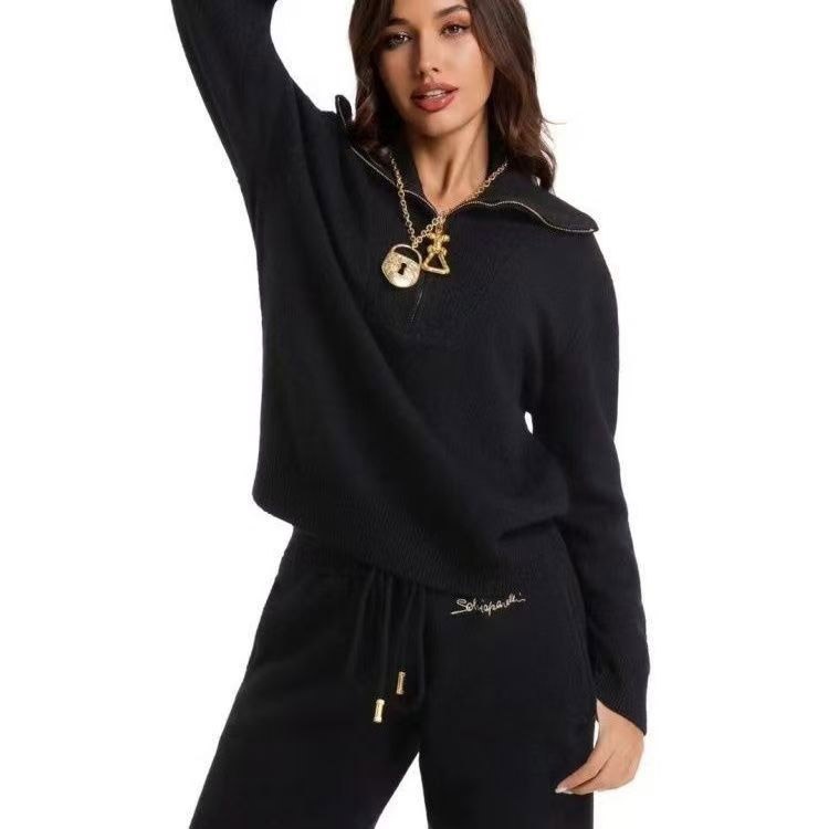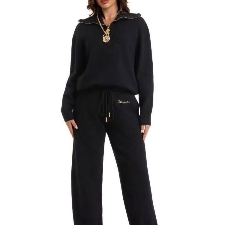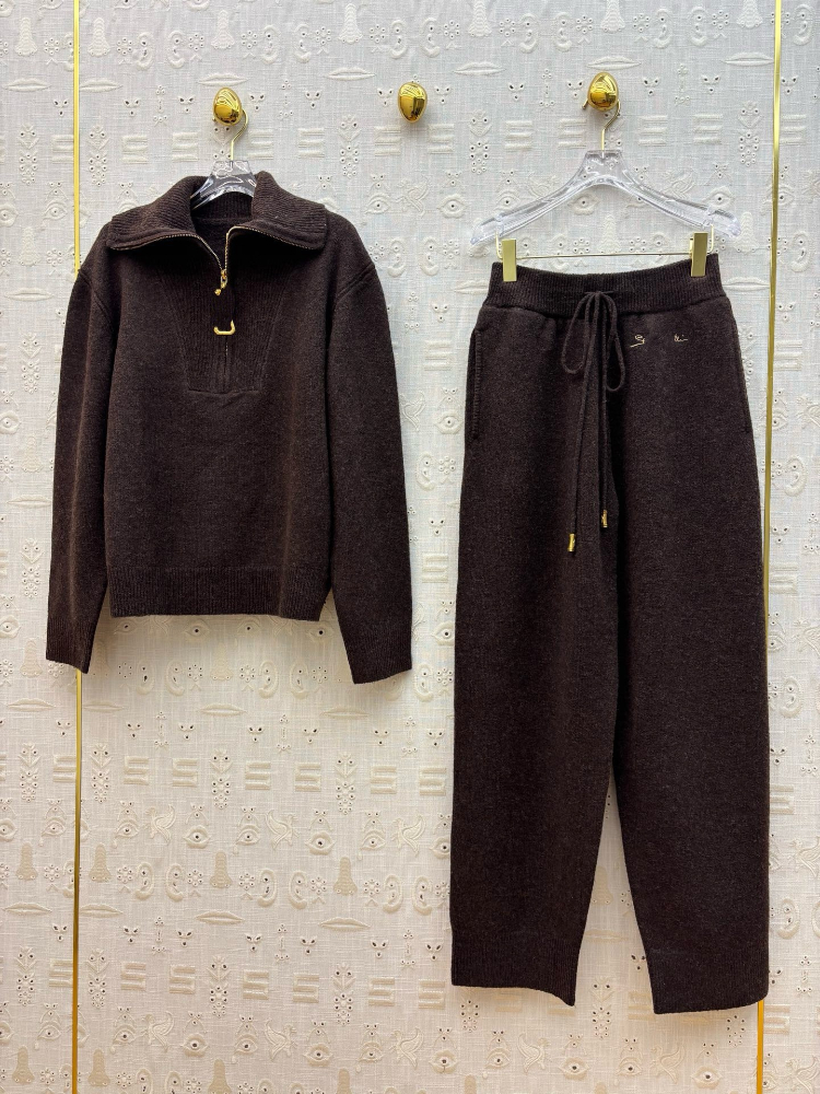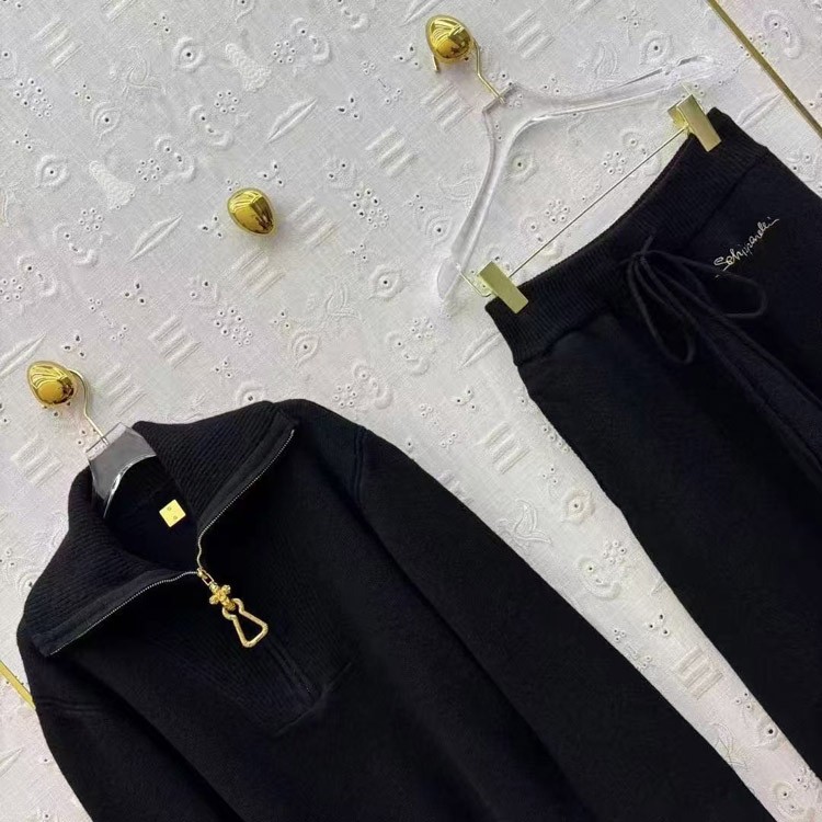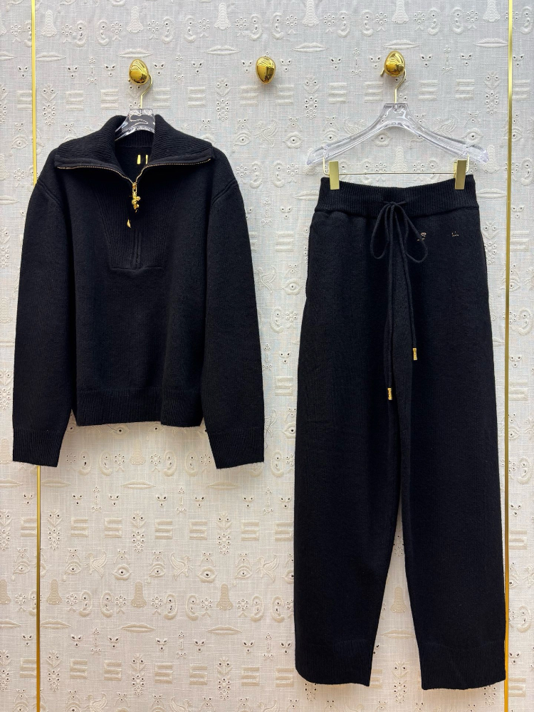 Schiaparelli new lapel half-zip knitted suit-5377