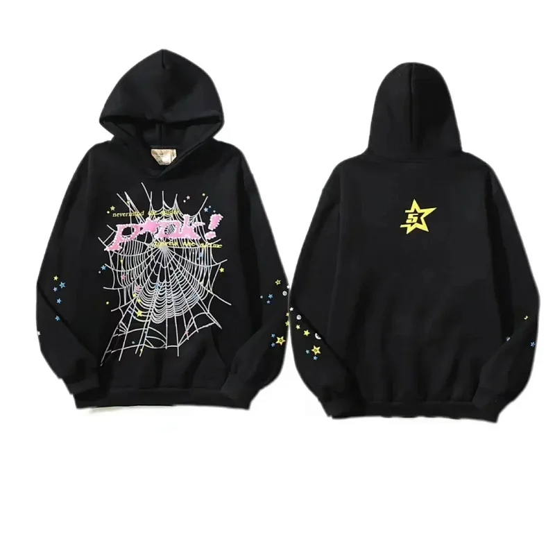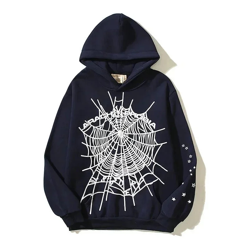 Sp5der Navy Phobia NY spider web print hoodie-2112