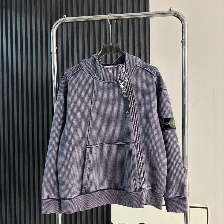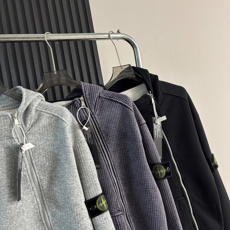 Stone Island classic style cardigan sweatshirt with hood and zipper closure-5264